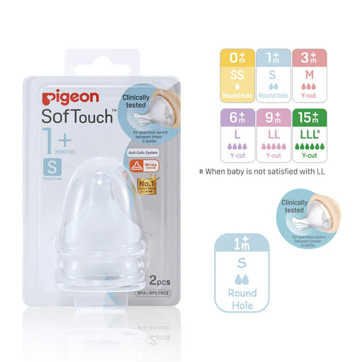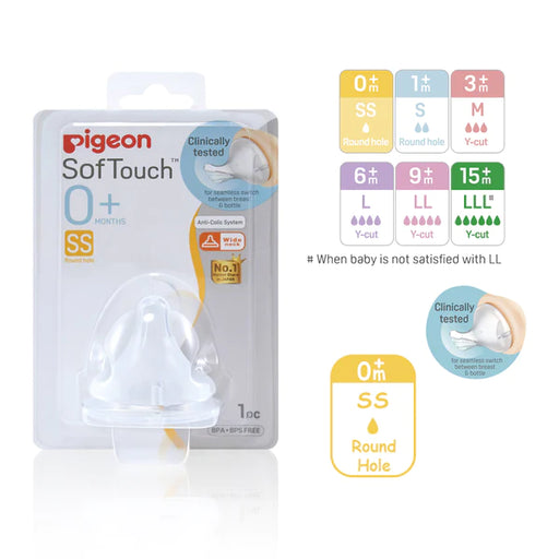 PIGEONOriginal price $5.20 - Original price $10.60Original price$5.20 - $10.60$5.20 - $10.60Current price $5.20| /PIGEON New and Improved SofTouch™ Nipple caters to the 3 key steps when a baby sucks: Latching On, Peristaltic Tongue Movement and Swallowing. All...