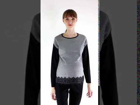 A unique marriage of houndstooth fabric and lace. Pair this drop shoulder long sleeve top with a slim fitting pants for a flair of sophistication and fun.
