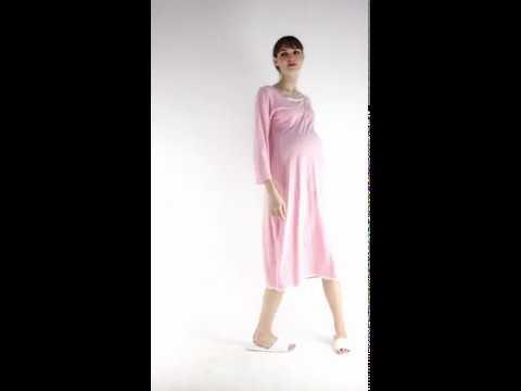 Long Sleeved Jessie Maternity and Nursing Gown Hue Pink