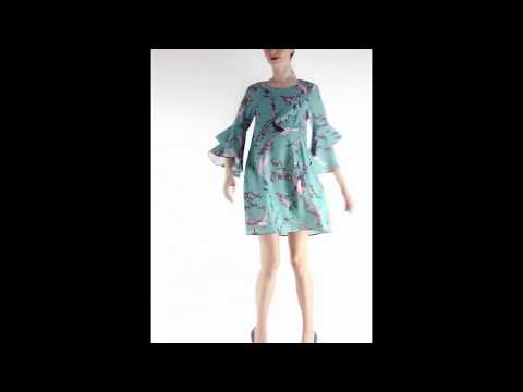 Romantic cascading ruffle sleeves makes this dress a must-have in your wardrobe. Flattering a-line slihouette makes this dress perfect for maternity and beyond.