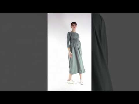 - Long sleeve knee maxi dress with a twist front detail